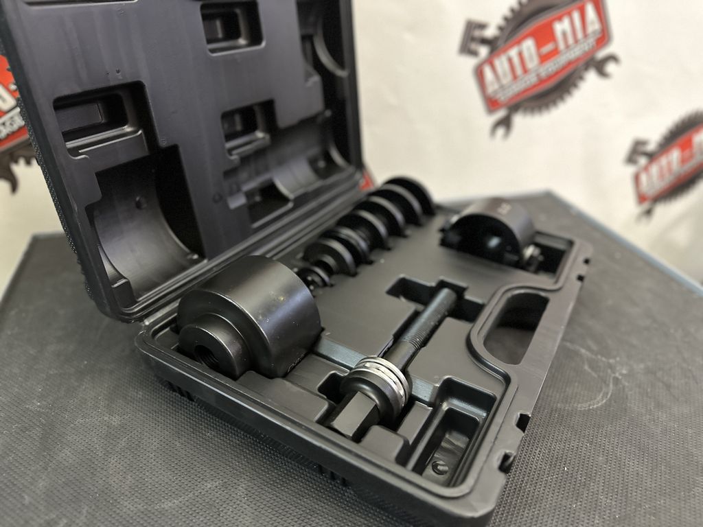 - Инструмент оптимален для установки и демонтажа деталей, а также для выпрессовки ступиц без необходимости разбирать поворотный кулак и стойки амортизатора.
