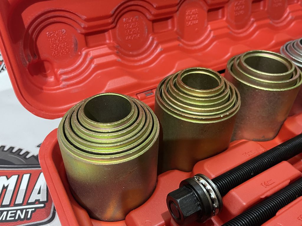 Набор используется для снятия и установки подшипников , подшипников с резиновой втулкой, сайлентблоков, втулок.