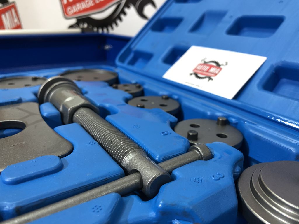 Набор предназначен для вдавливания поршней тормозных цилиндров автомобилей с дисковыми тормозами. Позволяет избежать повреждения манжет и поршней суппорта.