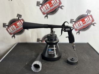 - Благодаря пластиковой трубке-распылителю, описывающей круговые движения с помощью сжатого воздуха, и моющей жидкости эффективно вычищаются любые поверхности интерьера автомобиля: кожа, текстиль, пластик, резина и пр.