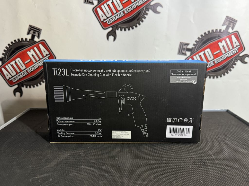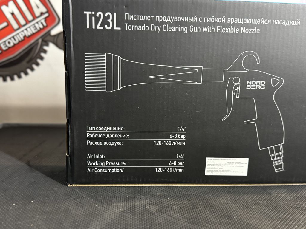 Пистолет продувочный NORDBERG Ti23L – универсальный инструмент, производящий очистку поверхностей автомобилей в детейлинг-студиях, автомойках, химчистках.