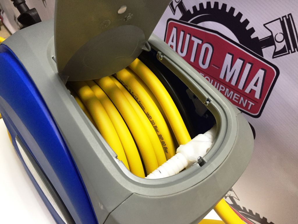 - Автоматическая катушка не позволяет шлангу запутаться или перетираться, что значительно облегчает работу с пневмоинструментом.